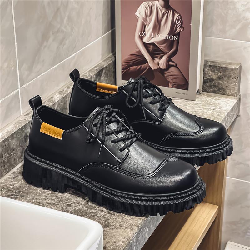 Мужская повседневная обувь из черной кожи, модная новая обувь на шнуровке для бизнеса, удобная обувь для платья, нескользящая обувь на платформе, рабочая обувь 39 чёрный
