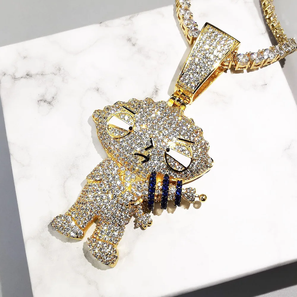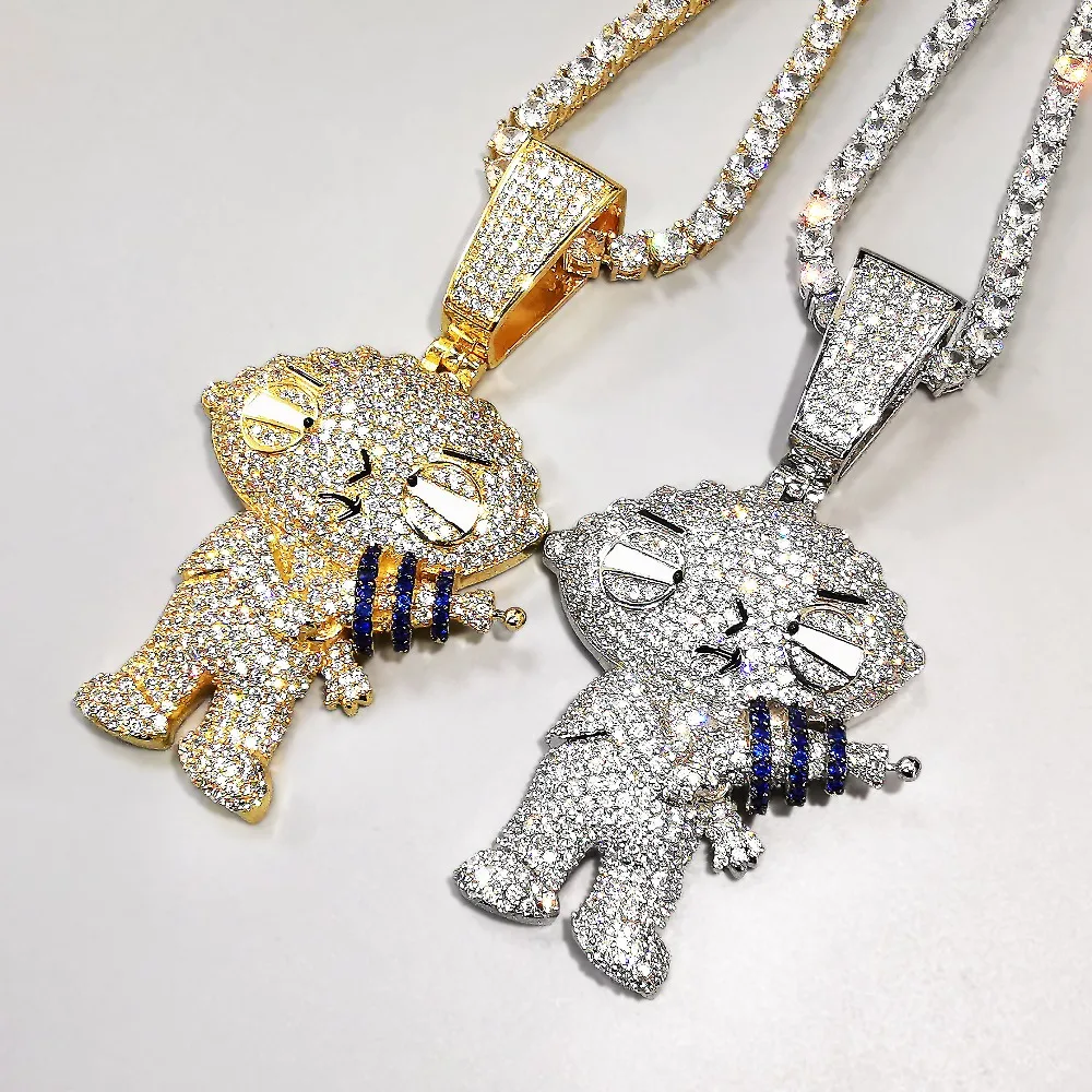 Мужская подвеска с мультяшными фигурками в стиле панк, теннисная цепочка с цепочкой, ожерелье из циркония ААА в стиле хип-хоп, Подарочная би...