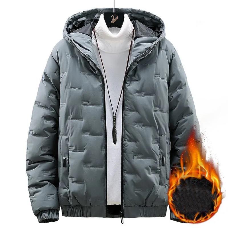 Мужская пуховая куртка с капюшоном, обычная зимняя бархатная толстая теплая хлопковая куртка, мужская повседневная верхняя одежда с принтом букв, универсальные пальто на молнии M