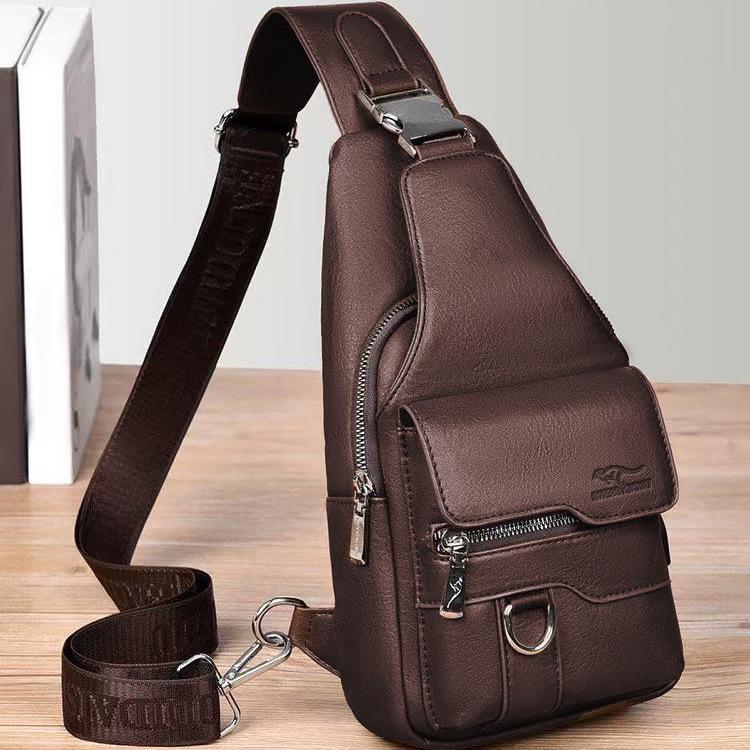 Мужская ретро водонепроницаемая сумка кроссбоди на грудь – Большая вместимость, прочная спортивная сумка на одно плечо коричневый