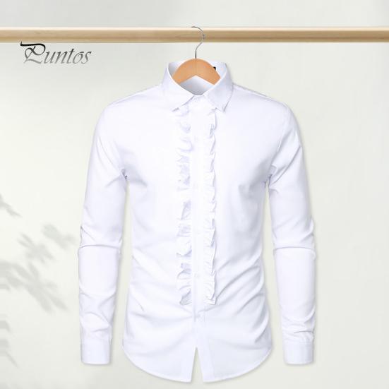 Мужская рубашка Ретро Средневековая однобортная однобортная королевский стиль с рюшами в стиле пэчворк Воротник с лацканами с длинным рукавом Сплошной цвет Slim Fit Формальная Мягкая дышащая Средняя длина