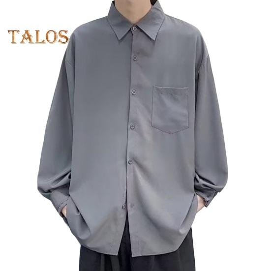 Мужская рубашка весна-осень с отложным воротником свободного кроя в стиле ретро в японском стиле, однобортная, с длинными рукавами, однотонная, средней длины, для молодежи, для официальных деловых мероприятий L серый