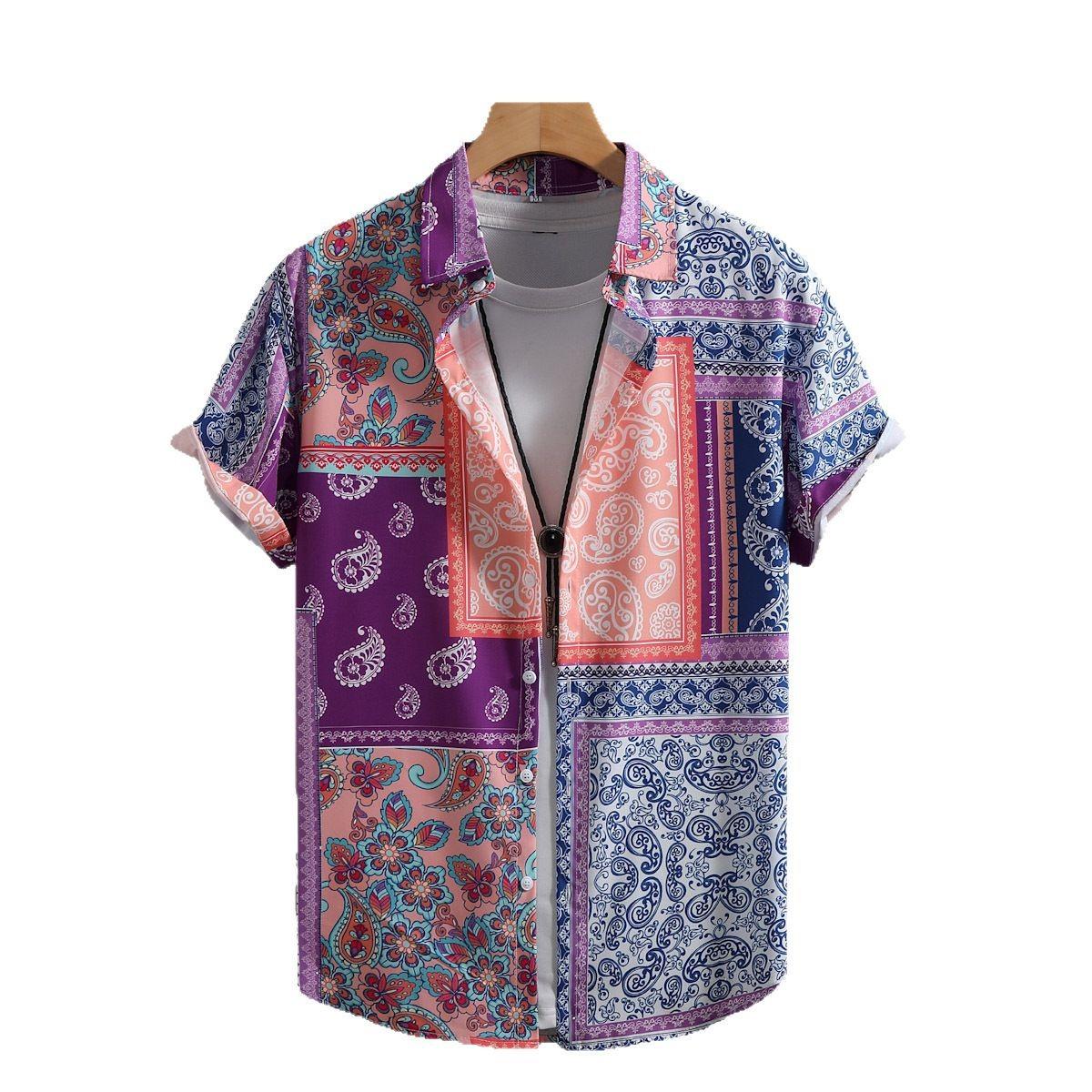 Мужская рубашка с коротким рукавом, в стиле пэчворк с кешью и орехами, в стиле ретро на Ближнем Востоке, повседневная, летняя, новая коллекция 2025 года. S