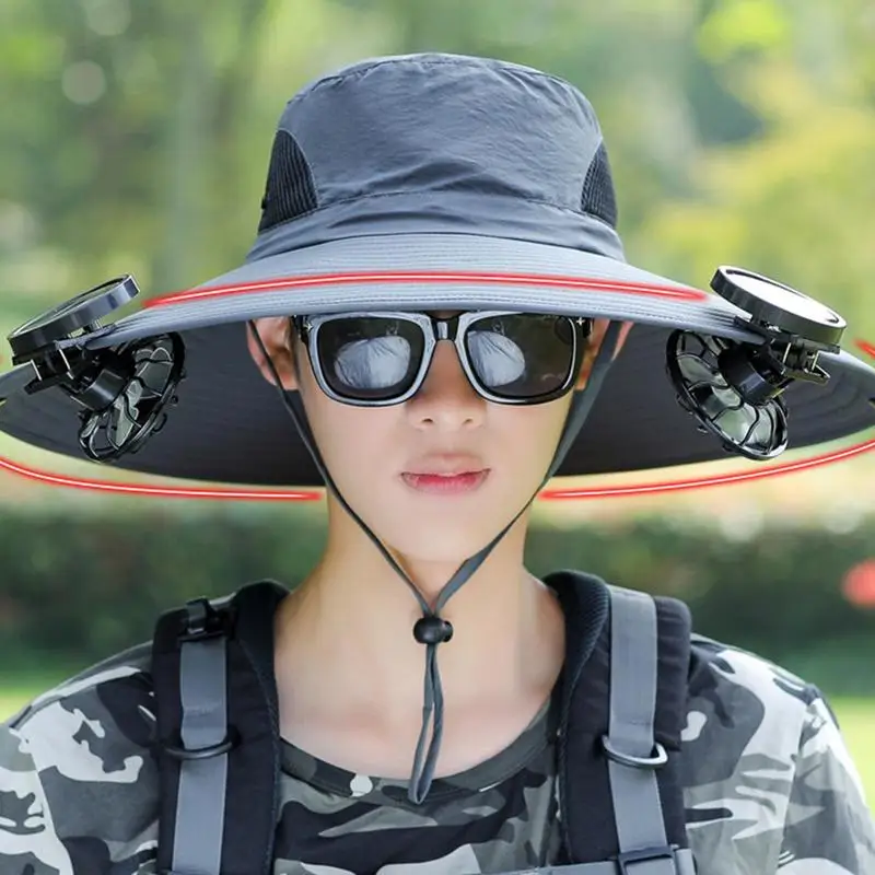 Мужская рыболовная шляпа с широкими полями и солнечными вентиляторами, мужская шляпа для улицы с солнечной и USB зарядкой, женская уличная шляпа для рыбалки, летняя Солнцезащитная шляпа