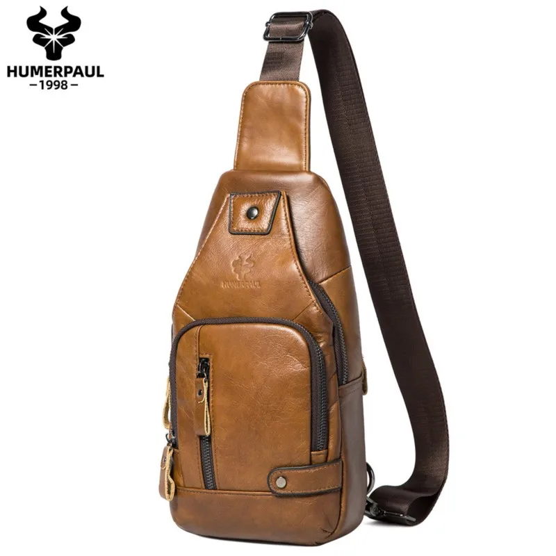 Мужская уличная нагрудная сумка из натуральной яловой кожи с внешним USB-портом для зарядки, деловая сумка через плечо на одно плечо для поездок на работу