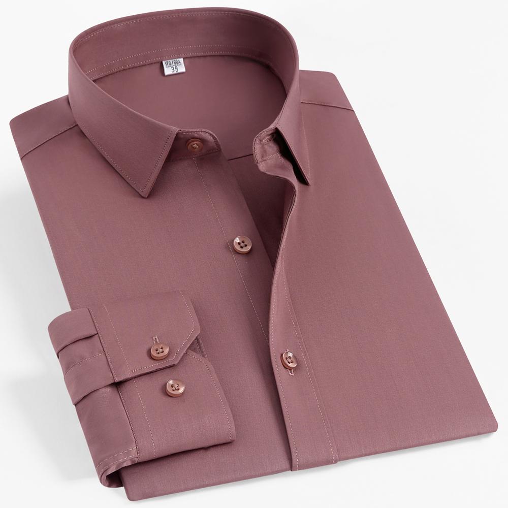 Мужская формальная рубашка с длинным рукавом из бамбукового волокна, не требующая глажки, без кармана, удобная, дышащая, готовая к бизнесу, обычного кроя, легкая в уходе 45 коралл красный