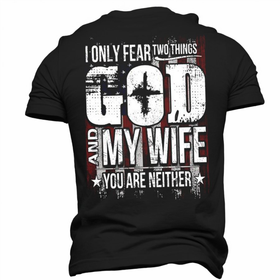 t-shirts,мужская футболка в подарок подруге на день матери «я боюсь только двух вещей: бог и моя жена»