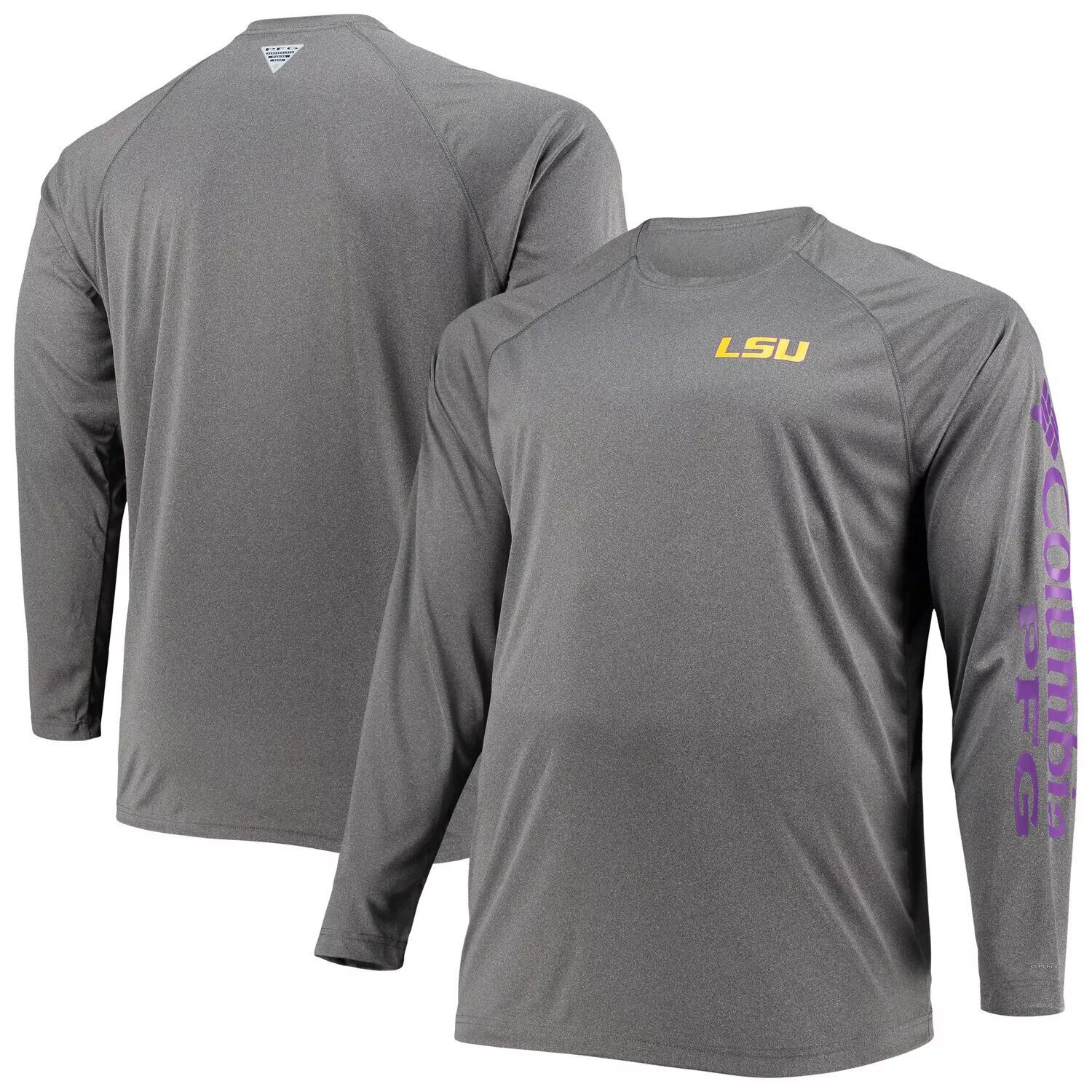 Мужская футболка Columbia Charcoal LSU Tigers Big & Tall Terminal Tackle Omni-Shade с длинными рукавами реглан