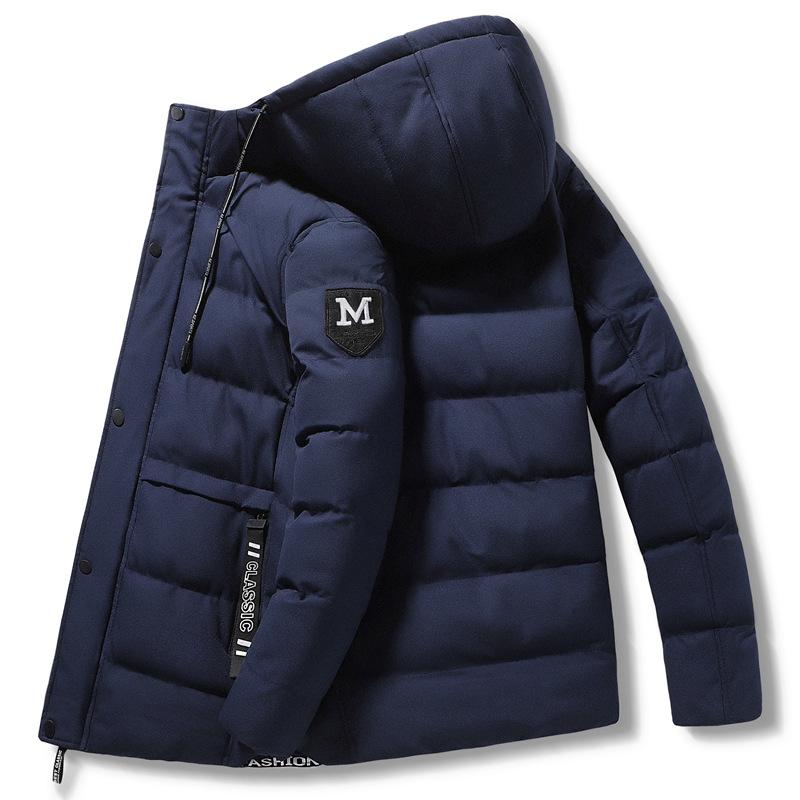Мужская хлопковая куртка с капюшоном, зимняя флисовая утолщенная хлопковая одежда, теплая мужская молодежная хлопковая одежда 5XL темно-синий