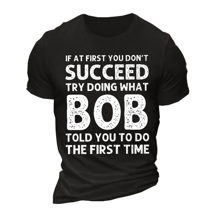 t-shirts,мужская хлопковая футболка с буквами забавная если сначала у вас ничего не получится попробуйте сделать то что боб сказал вам сделать в первый раз футболка