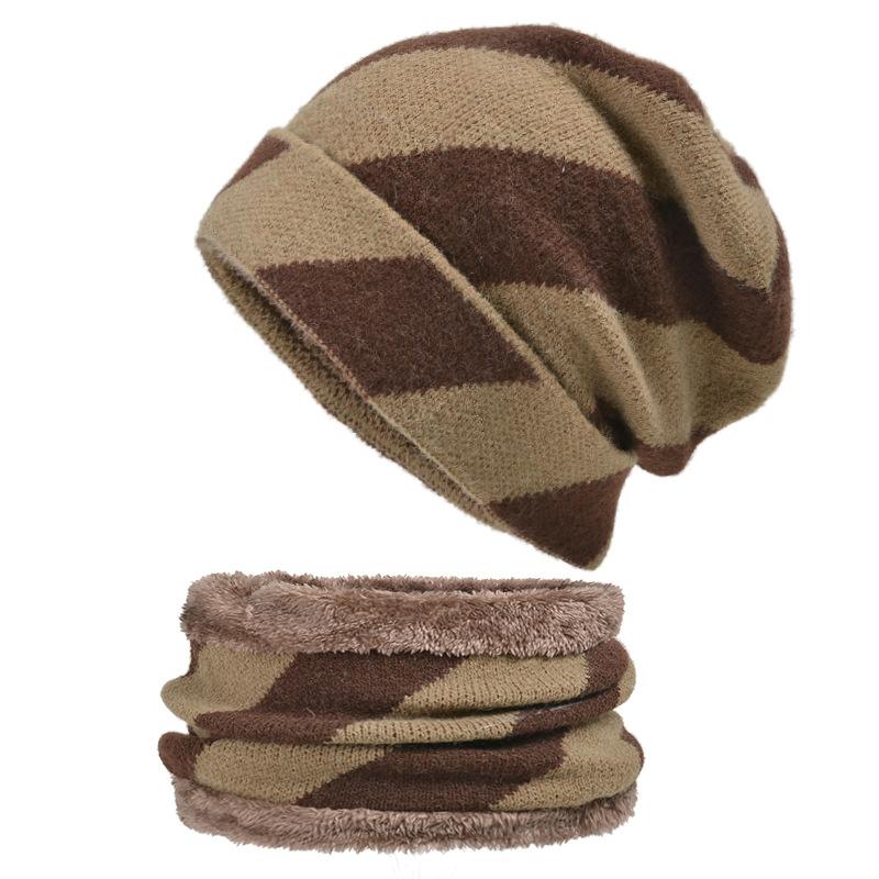 Мужская шапка, уличная зимняя защита ушей, морозостойкая теплая вязаная шапка, полосатая шерстяная шапка с рукавами Average size