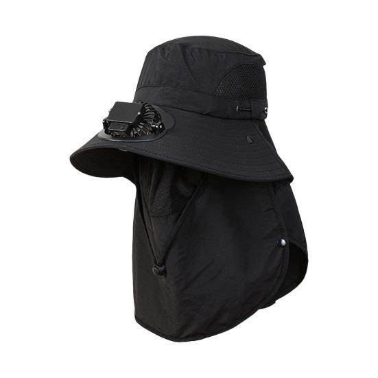 Мужская шляпа-веер на солнечной батарее с защитой лица и шеи, USB-зарядка, большой полевой козырек, сетчатый ветрозащитный ремешок, защита от ультрафиолета и солнечных лучей, для рыбалки на открытом воздухе 1 Set чёрный