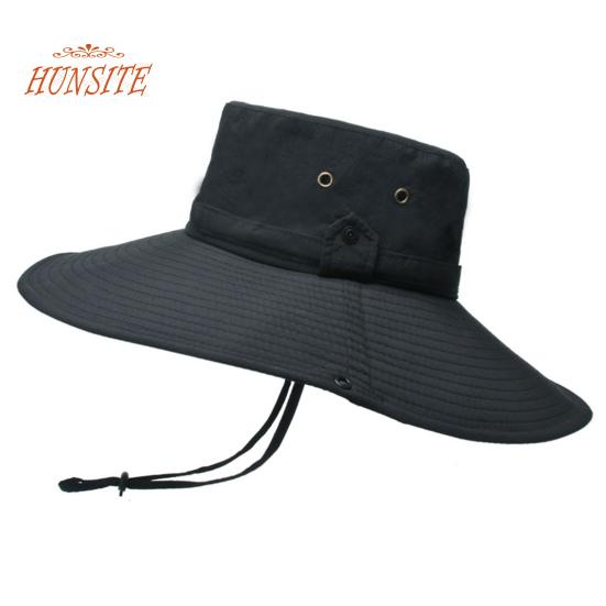 Мужская шляпа от солнца с широкими полями, дышащая сетка на шнурке, упаковка, ветрозащитная защита от солнца, быстросохнущая летняя анти-УФ-рыбацкая кепка, товары для улицы чёрный