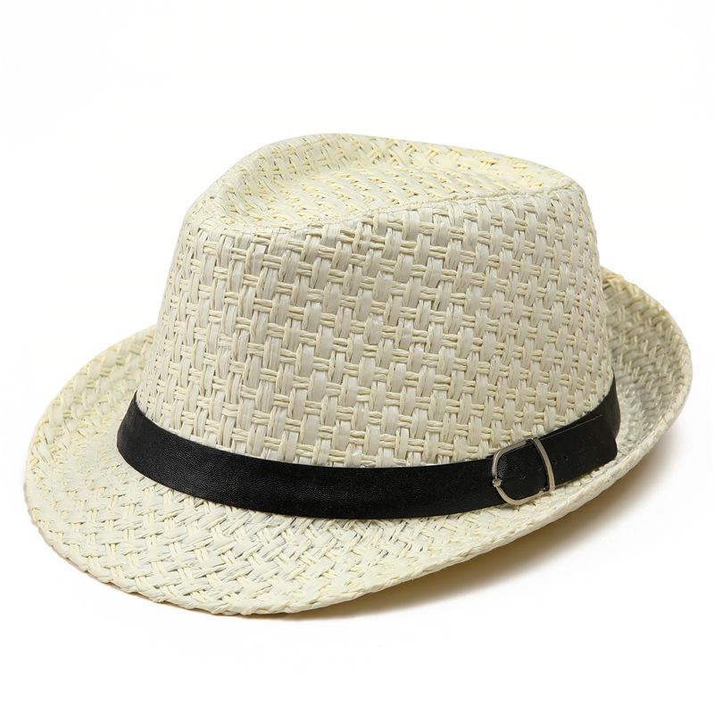 Мужская шляпа с загнутыми пряжками из кожи, шляпа в стиле джаз, весенне-летняя шляпа в стиле тент, пляжная шляпа, соломенная шляпа, ковбойская шляпа для скалолазания и защиты от солнца M(56-58cm) белый