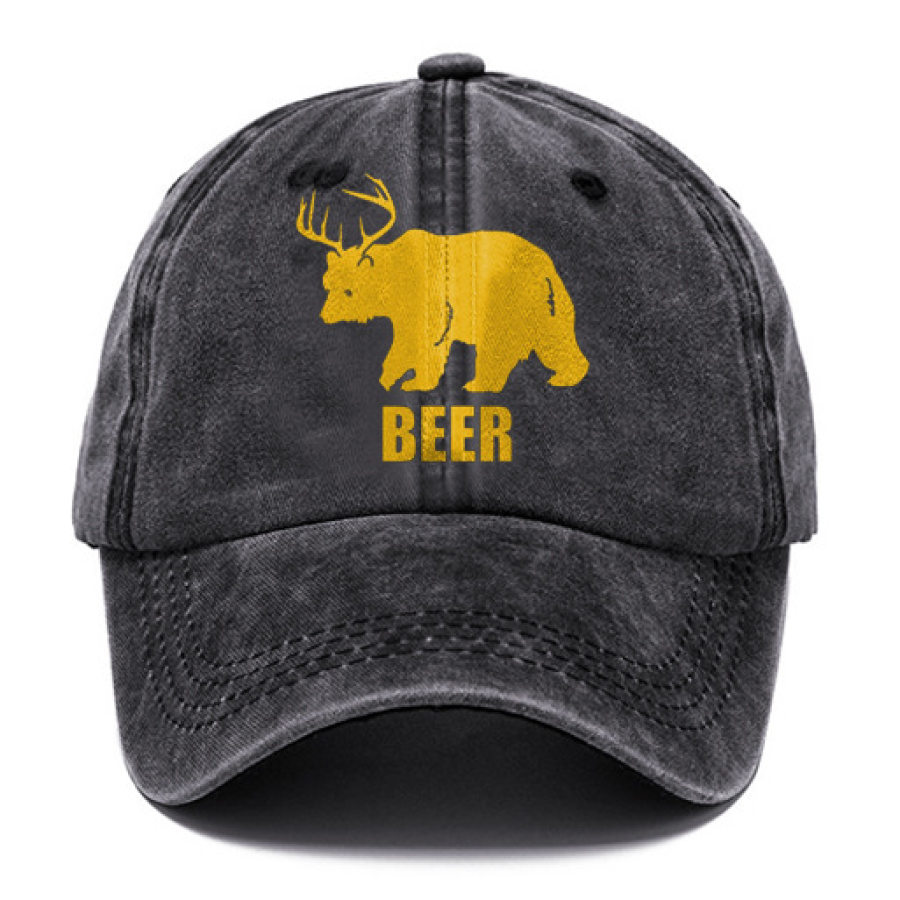 hats,мужская шляпа с изображением оленя и медведя и пивом напечатанная из мытого хлопка в стиле ретро с принтом проблемная шляпа для папы