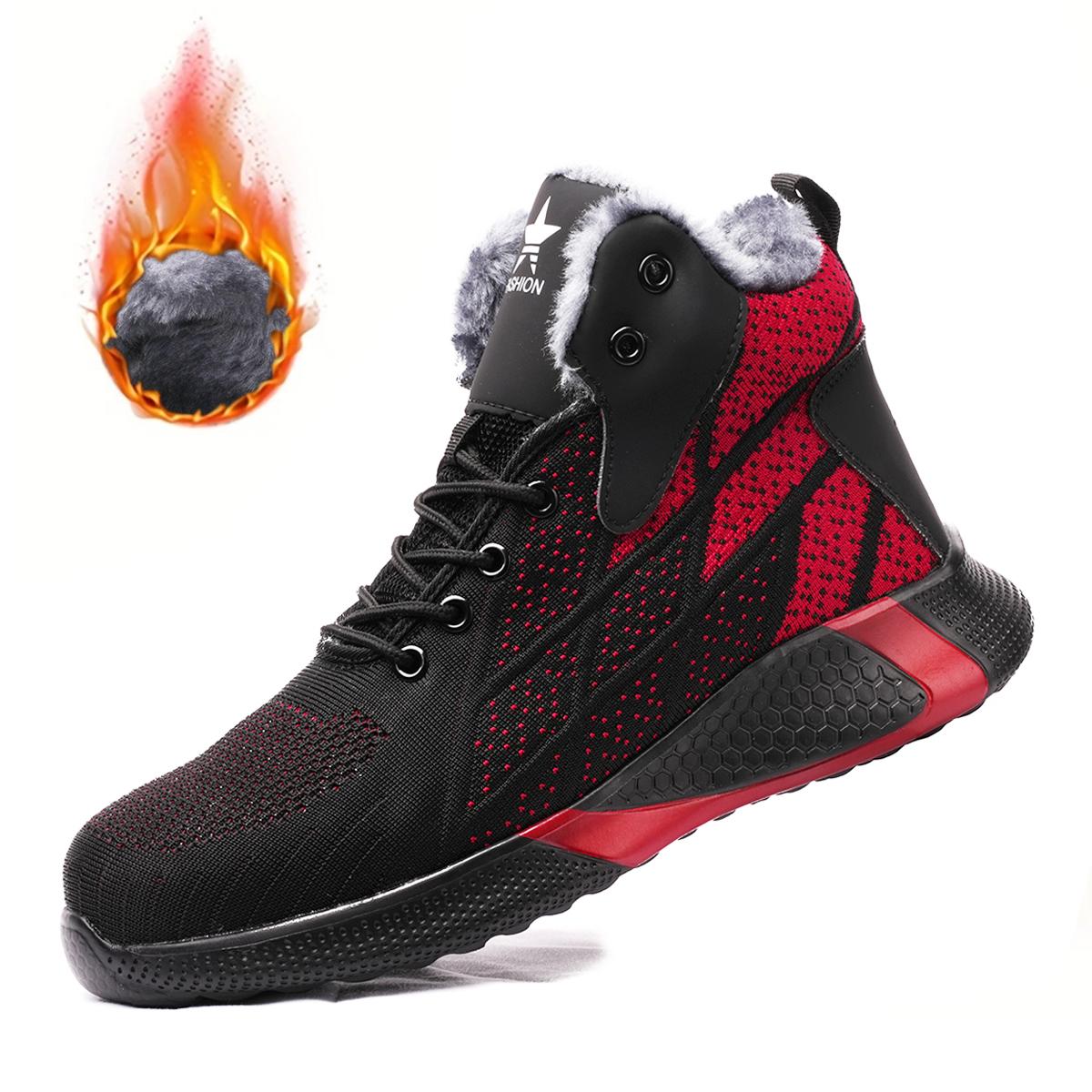 Мужские ботинки Зимние рабочие ботинки Стальной подносок Защитная обувь Теплые плюшевые Строительные ботинки Защитная обувь против прокола Женщины 36