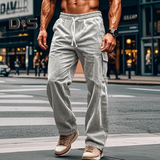Мужские брюки-карго с эластичной талией на шнурке, прямые, свободные, однотонные, в стиле ретро-американки, с карманами, повседневные спортивные брюки, длинные спортивные штаны XXXL чёрный