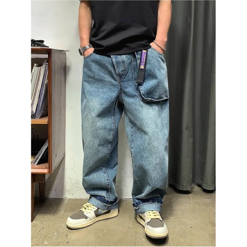 Мужские весенне-осенние джинсы в стиле ретро с большим карманом, повседневные, большие, свободные, прямые, широкие штанины 2XL