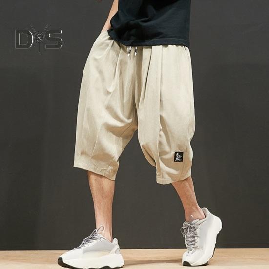 Мужские весенние брюки-карго со свободными боковыми карманами и эластичной резинкой на талии, однотонные спортивные штаны для тренировок в тренажерном зале, укороченные брюки M хаки