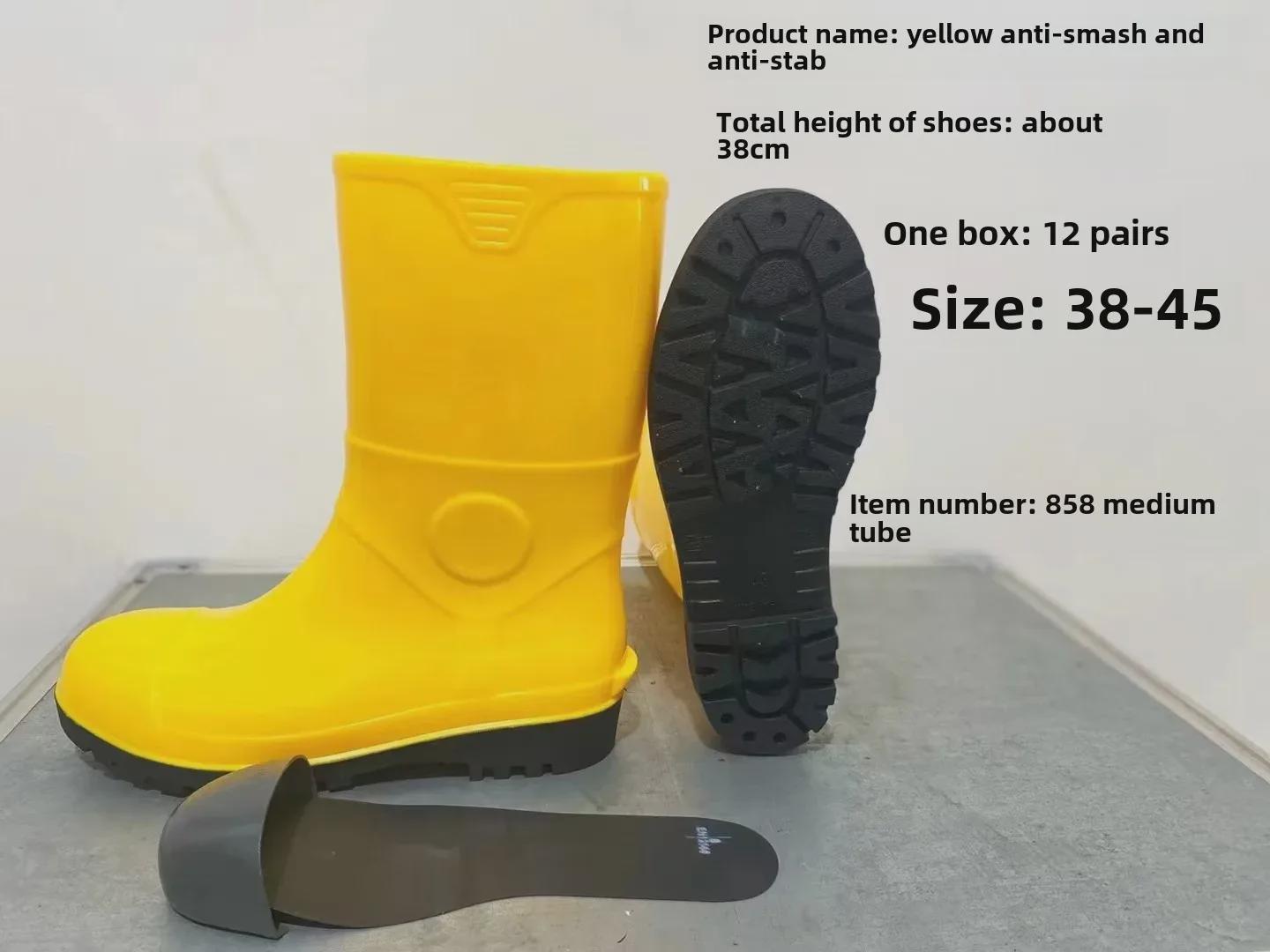 Мужские желтые резиновые сапоги: Средняя и высокая камера, стальной носок, защита от ударов, проколов, устойчивость к кислотам и маслам. 42