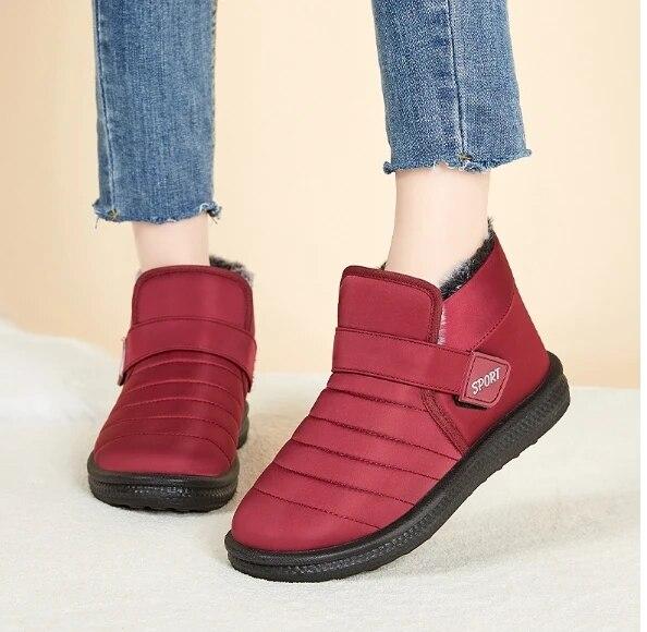 Мужские и женские зимние ботинки, коллекция 2023 года, зимние теплые длинные плюшевые непромокаемые ботильоны для пар, нескользящая обувь на плоской подошве A0059 41 красный