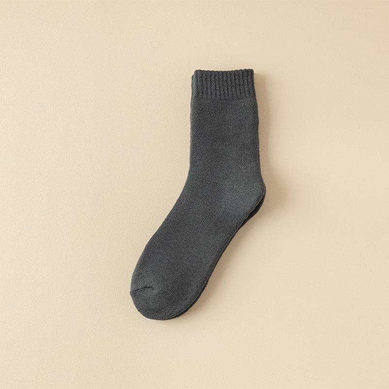 Мужские зимние бархатные и толстые теплые однотонные домашние носки из шерсти с подогревом 1 pair темно серый