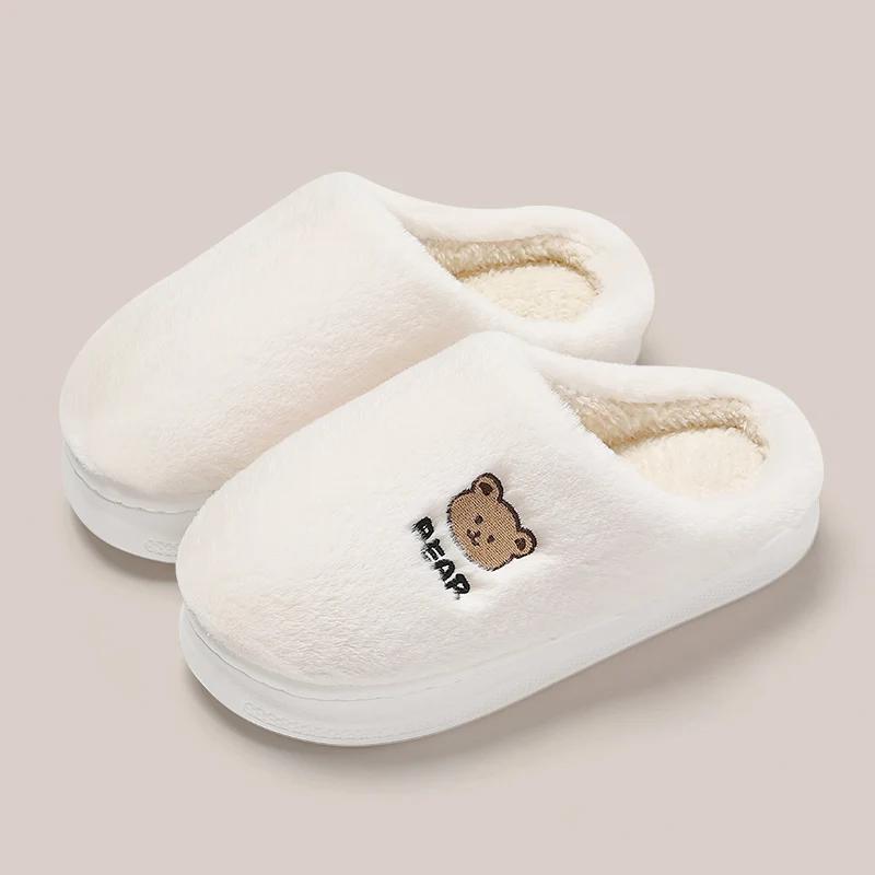 Мужские зимние домашние тапочки Женские мягкие пушистые напольные туфли Милые мультяшные теплые плюшевые шлепанцы для пар Домашние комнатные нескользящие тапочки 40-41 бежевый
