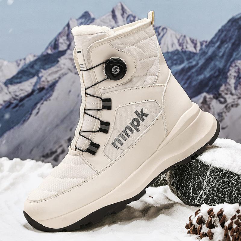 Мужские зимние новые утепленные ботинки на толстой подошве, нескользящие, для Северо-Востока, теплые, с вращающейся пряжкой, высокие хлопковые ботинки 44
