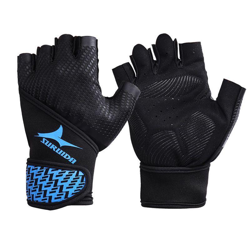 Мужские и зимние перчатки для велоспорта, мотоциклетные перчатки с половинным пальцем, амортизирующие, водонепроницаемые, спортивные, нескользящие, для фитнеса, спорта XL чёрный/синий