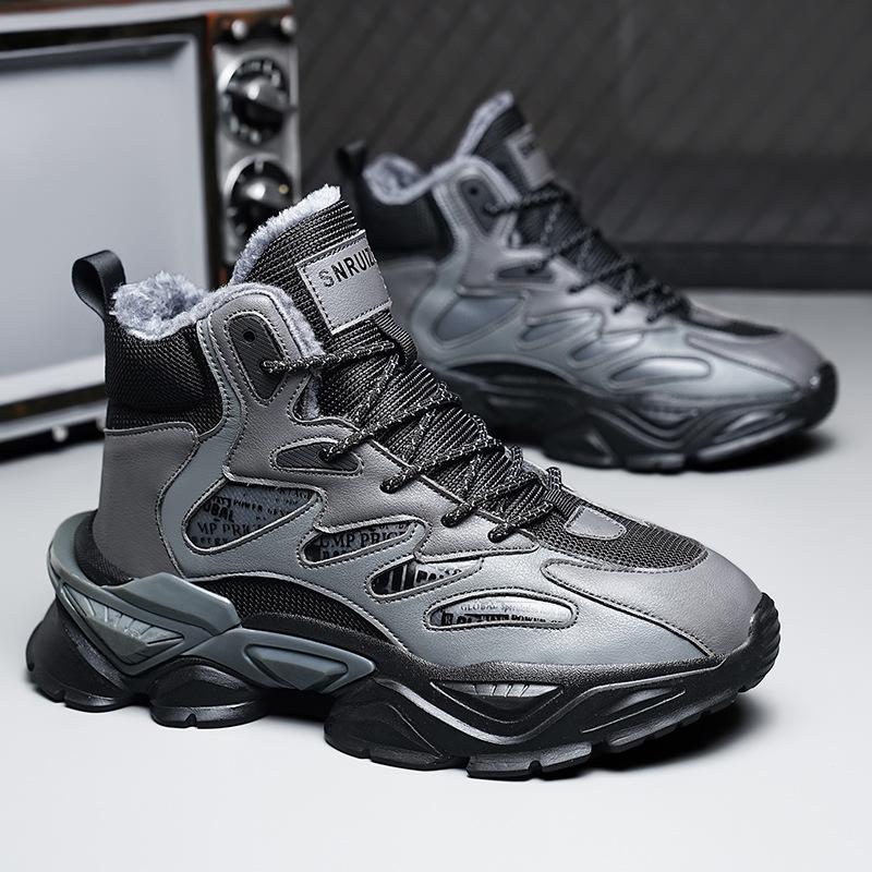Мужские зимние сапоги на меху, утепленные, теплые, для улицы, на толстой подошве, зимние высокие, северо-восточные, большие хлопковые сапоги, мужские, на толстой подошве, увеличивающие рост 46 черный серый