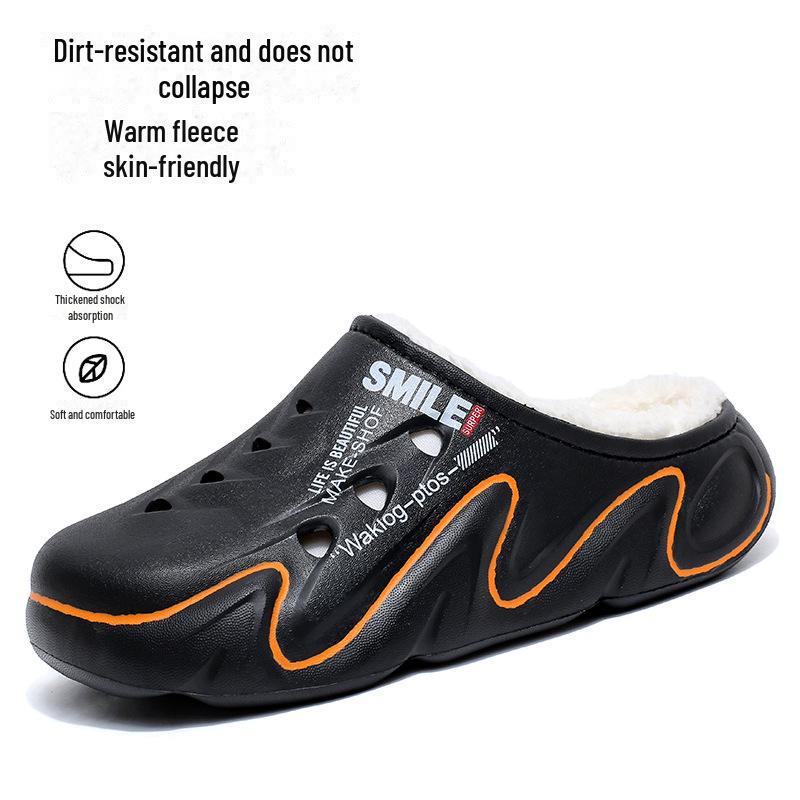 Мужские зимние тапочки из хлопкового бархата: Закрытый носок, утолщенная подошва, для ношения в помещении и на улице, теплые и удобные. 42-43