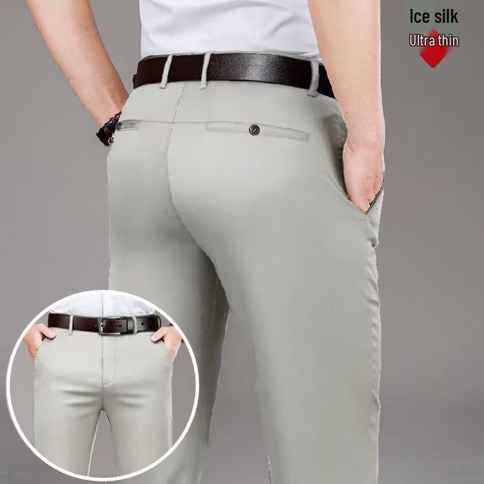 Мужские летние брюки из ледяного шелка в деловом повседневном стиле прямого кроя 39 грязно-белый