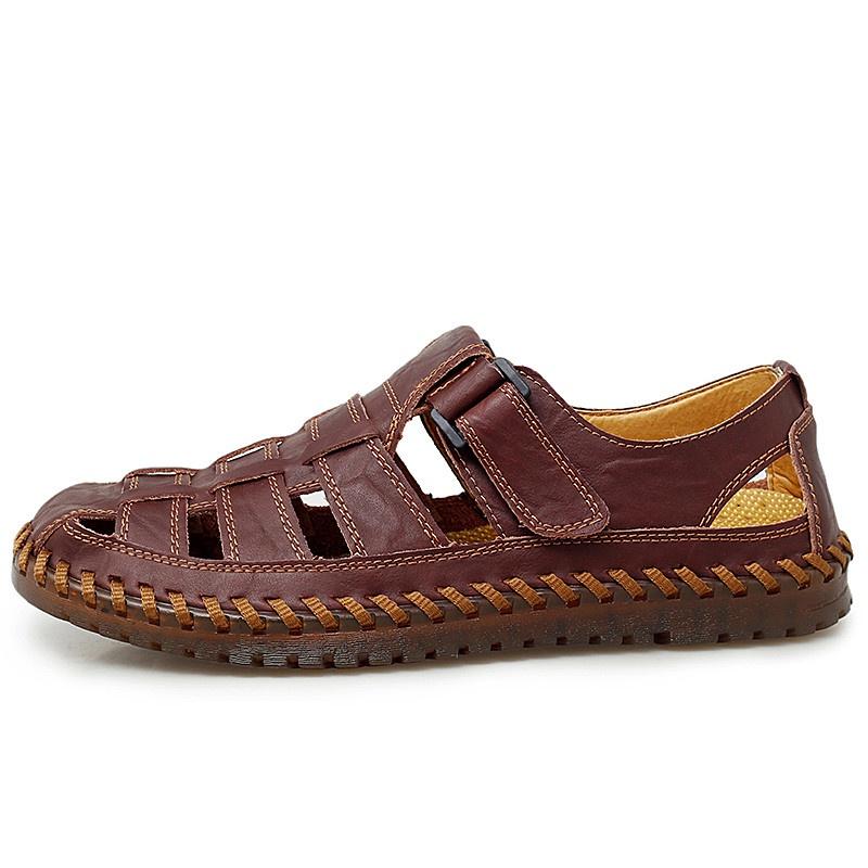 Мужские летние полые кожаные сандалии, дышащая винтажная кожаная обувь, повседневные уличные болотные лоферы на плоской подошве, пляжные тапочки 43 вино красного