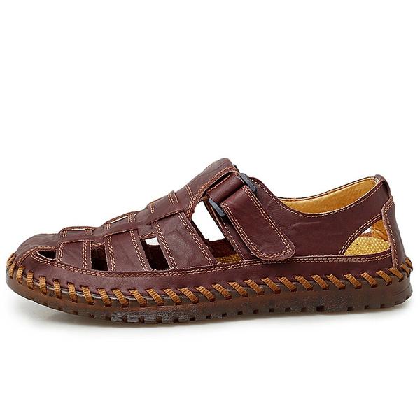 Мужские летние полые кожаные сандалии, дышащая винтажная кожаная обувь, повседневные уличные болотные лоферы на плоской подошве, пляжные тапочки 44 вино красного