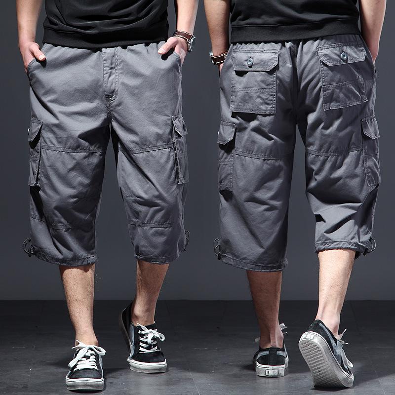 Мужские летние тонкие хлопковые пляжные шорты средней длины - больших размеров, свободного кроя, бриджи длиной до семи точек для ношения на открытом воздухе M серый