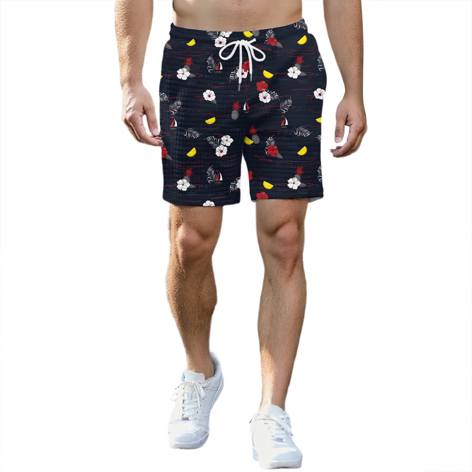 Мужские модные спортивные шорты с принтом, эластичный пояс, карманы, спортивные шорты L тёмно-синий