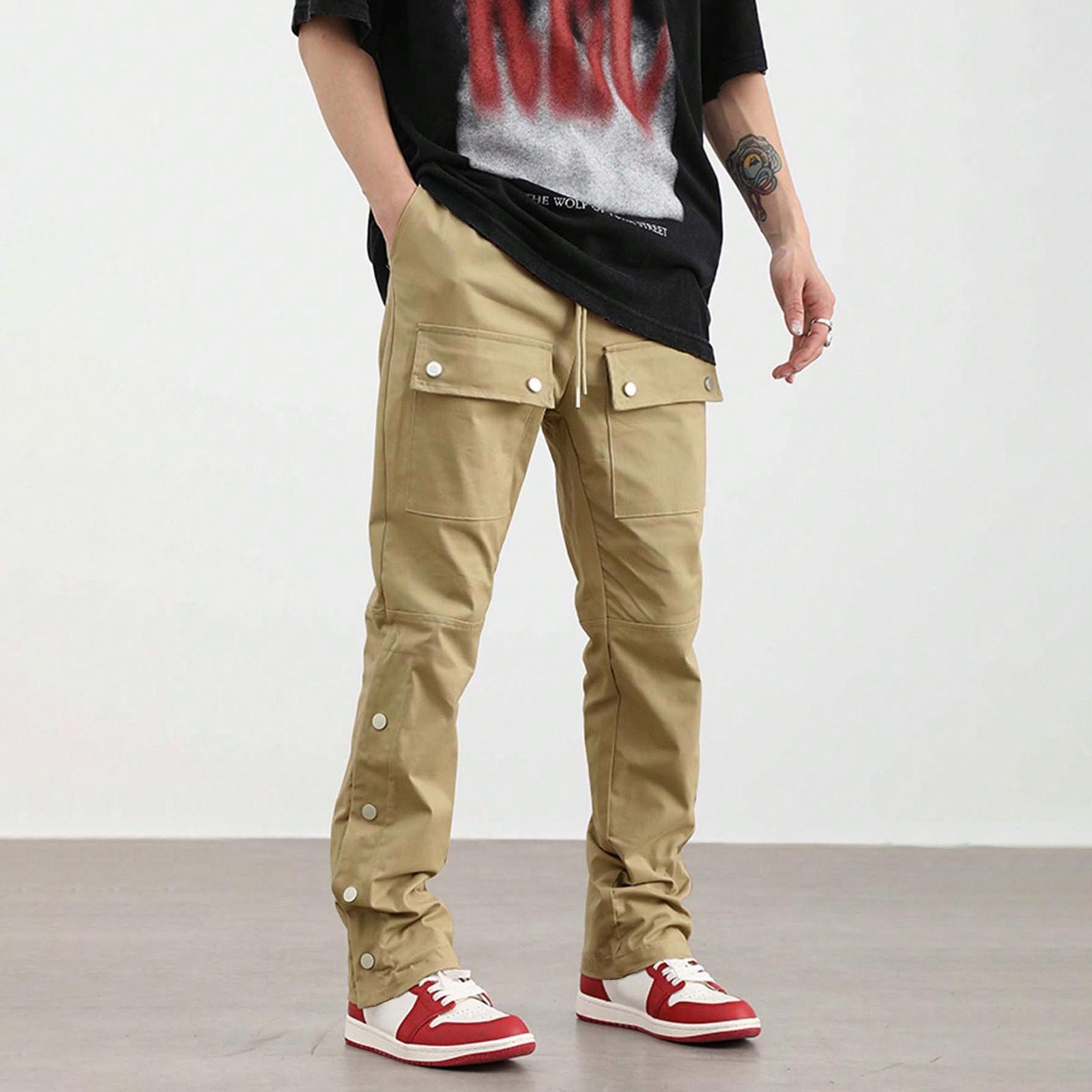 Мужские однотонные брюки прямого кроя в стиле ретро с широкими штанинами, мужские повседневные модные брюки с несколькими карманами S