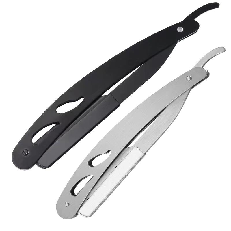 Мужские парикмахерские инструменты для бритья, бритва и лезвия, античный черный складной нож для бритья, держатель для прямой бритвы из нержавеющей стали