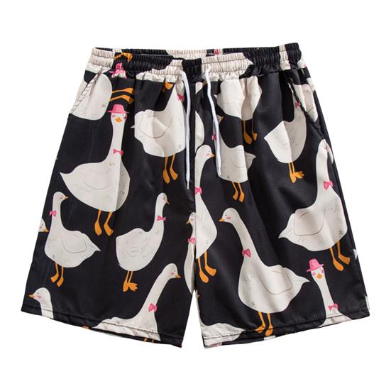 Мужские пляжные шорты с эластичной талией, регулируемые на шнурке, с принтом гуся из мультфильма, пляжные шорты, быстросохнущие шорты для отдыха XXL чёрный