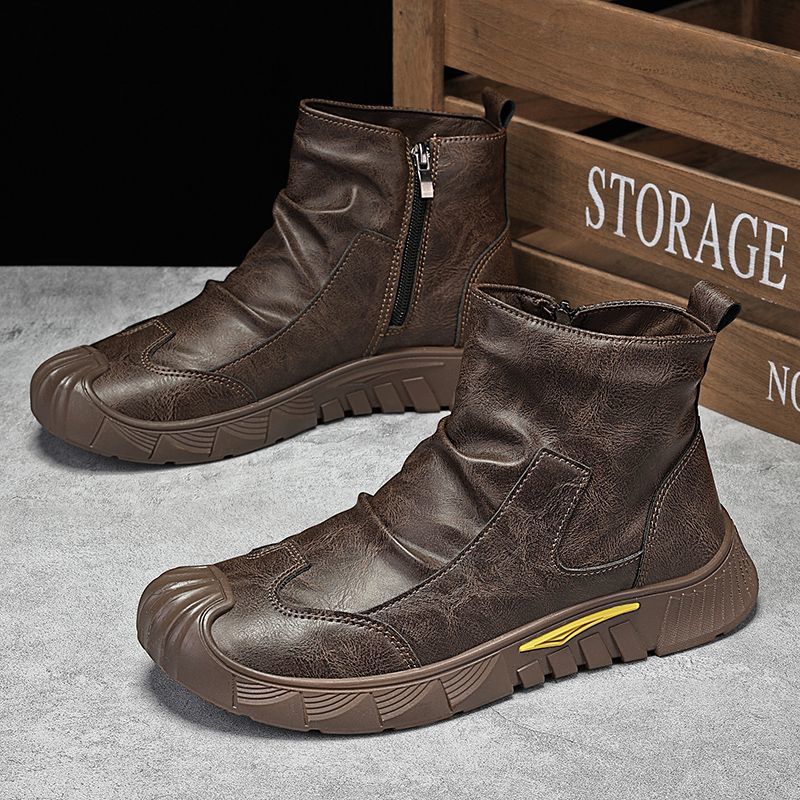 Мужские повседневные ботинки Толстая подошва Мужская кожаная обувь Платформа Ретро Средняя голень Удобные в акции на распродаже Обувь Предложение Новое 44