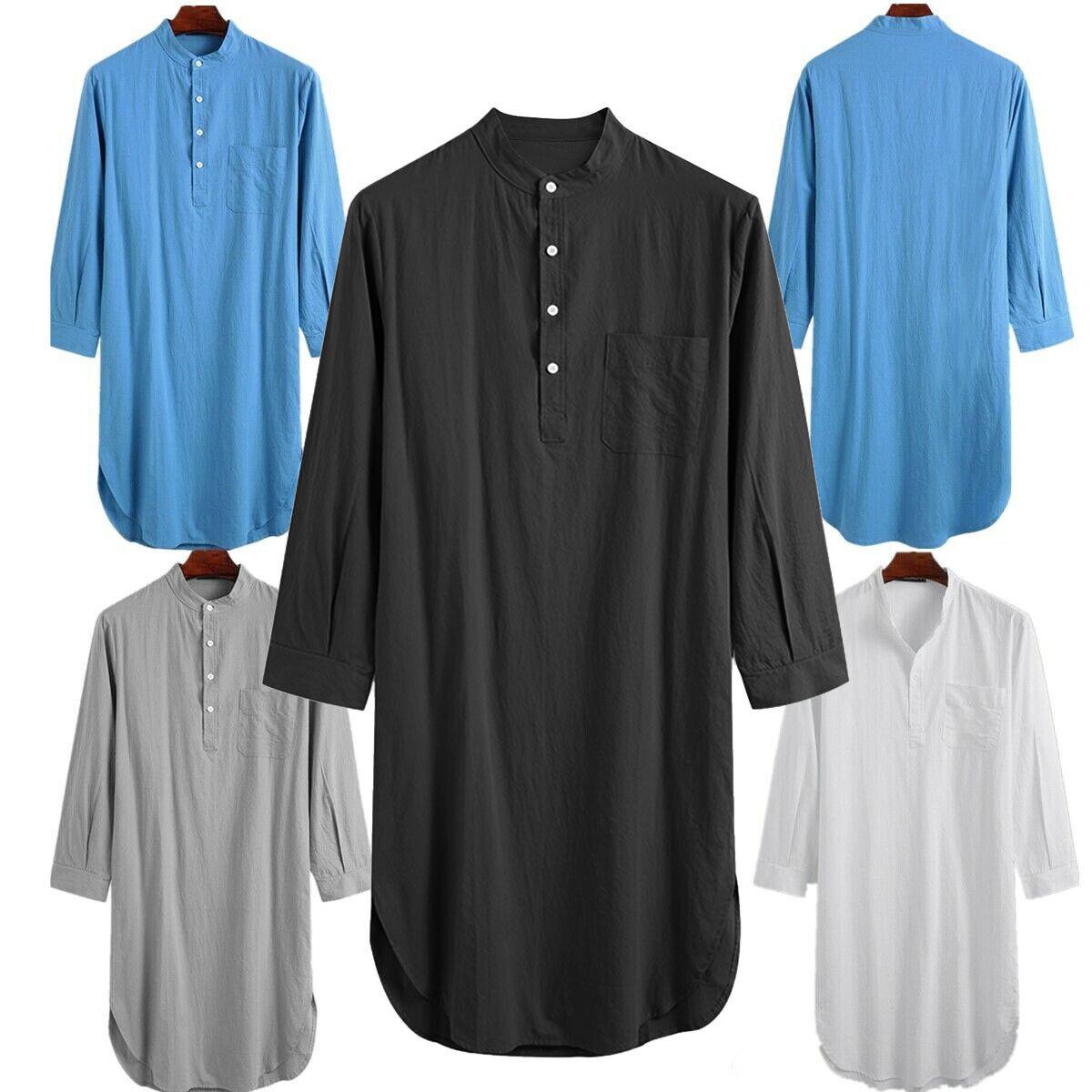 Мужские рубашки для сна с длинными рукавами, ночные рубашки, халат, пижама, ночной халат, платье, верхняя ночная рубашка, халаты, арабский Jubba Thobe для отдыха