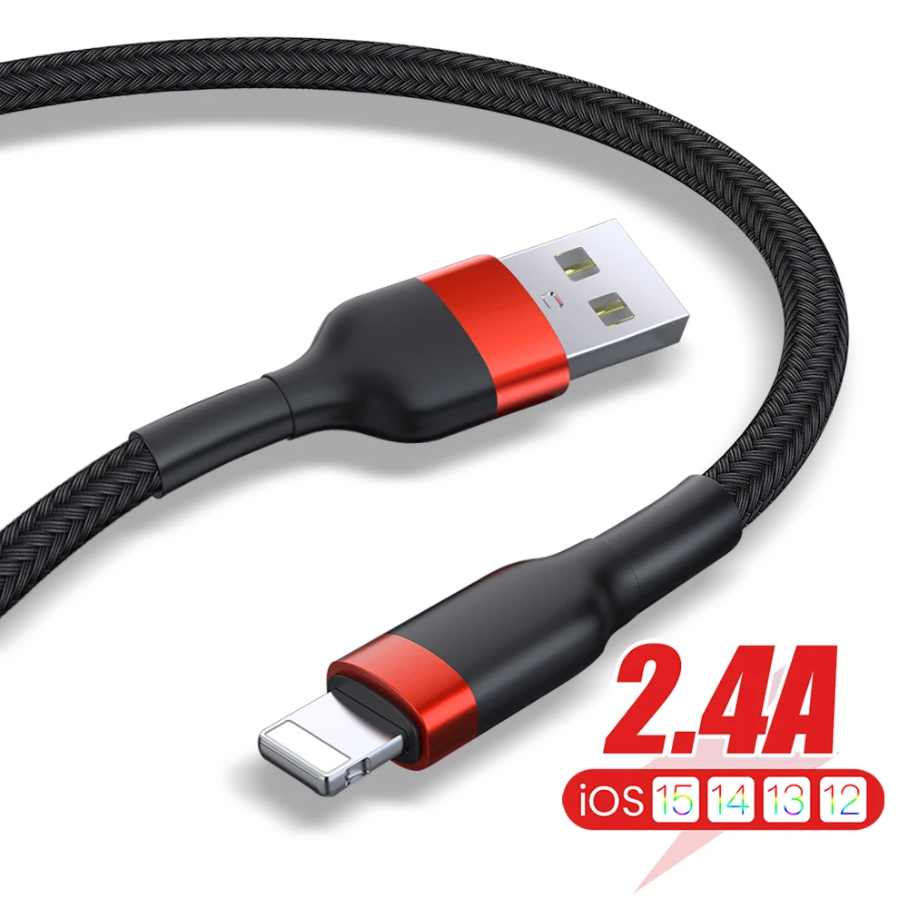 USB Lightning Cable for iPhone 13 12 11 Pro Max Xs 8 7 2.4A Fast Charging Cable for iPhone Charge Cable USB Data Cable 0.3/1/2M