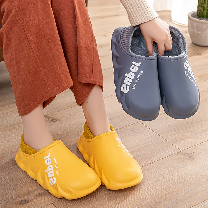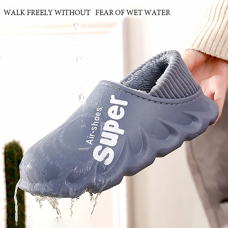 Мужские тапочки, зимняя теплая водонепроницаемая обувь, Нескользящие домашние тапочки, домашняя хлопковая обувь на толстой подошве, уютная мягкая обувь для пар