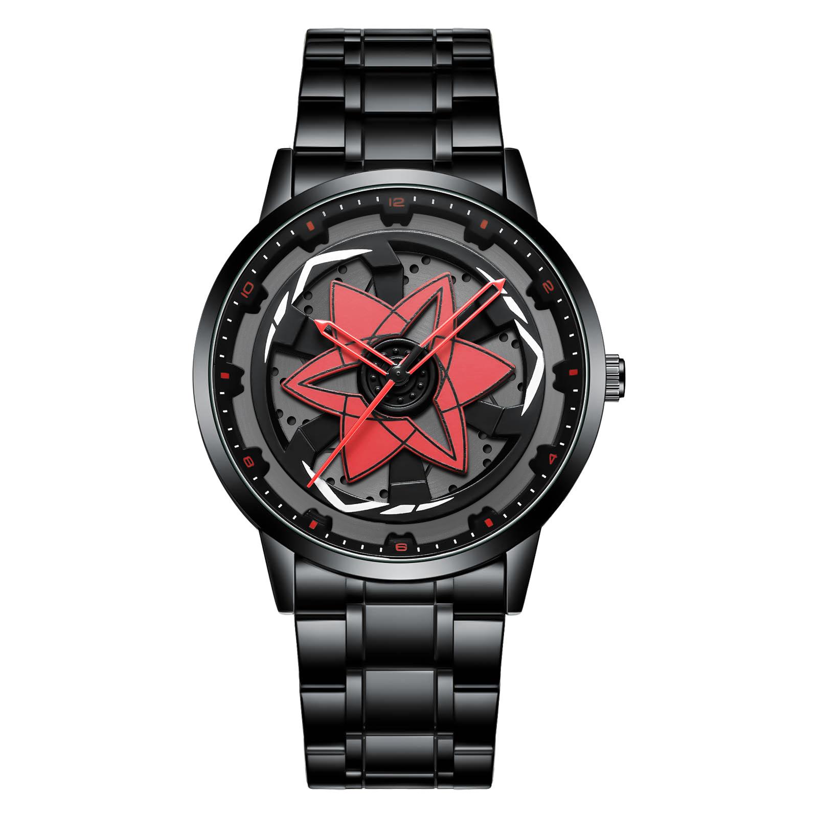Мужские часы Черная нержавеющая сталь Красный компас Вращающиеся часы Кварцевый механизм Оригинальные Водонепроницаемые Повседневные Спортивные часы красный