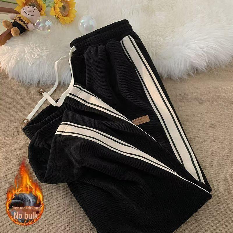 Мужские широкие брюки на флисовой подкладке: Модная, свободная, прямого кроя повседневная спортивная одежда для подростков и мальчиков - коллекция осень/зима. L