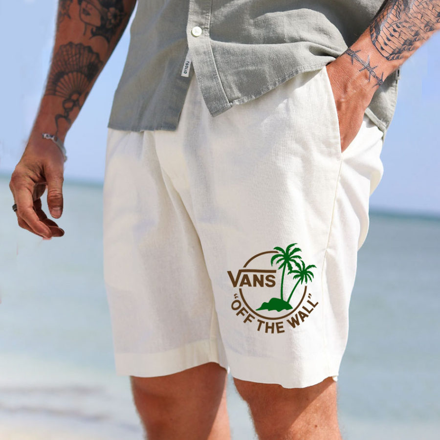 shorts,мужские шорты для серфинга хлопковые и льняные пляжные повседневные шорты с принтом пальм в стиле ретро