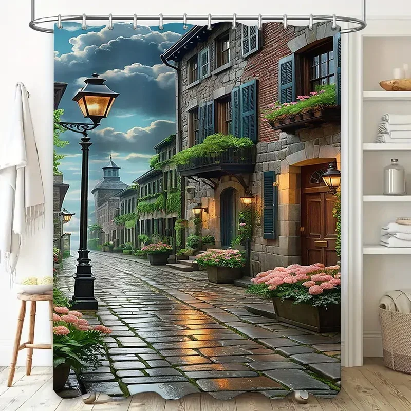 Очаровательная водонепроницаемая занавеска для душа Old Town Street, термостойкая, можно стирать в машине, непрозрачная, 180x180 см