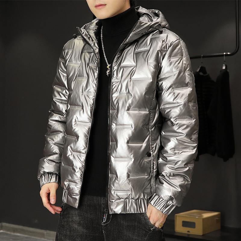 Мужское роскошное глянцевое водонепроницаемое теплое пуховое хлопковое пальто Женская модная короткая парка с капюшоном Мужская глянцевая куртка с капюшоном M серый