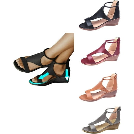 Open Toe Wedge Sandals For Women Dressy Casual Summer Zipper Back Platform Roman Sandal Comfy Low Heel Slide Shoes