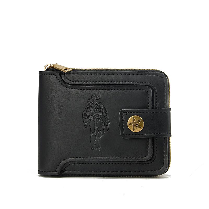 Мужской кошелек на молнии в стиле ретро: Множество слотов для карт и большая вместимость чёрный